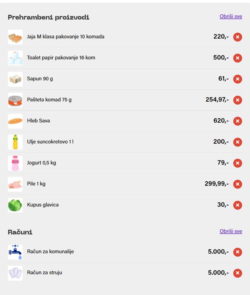 Prema okvirinim cenama troškova koje je Inicijativa navela u svom simulatoru, računi za vodu i struju iznose 10.000 dinara. To znači da bi osobi koja je primilac socijalne pomoći ostalo samo 2.266 dinara za sve ostale potrebe tog meseca. Bitno je napomenuti da simulator nema troškove plaćanja kirije, već samo obavljanja mesečne kupovine, te bi prethodna računica podrazumevala da je osoba stambeno obezbeđena.