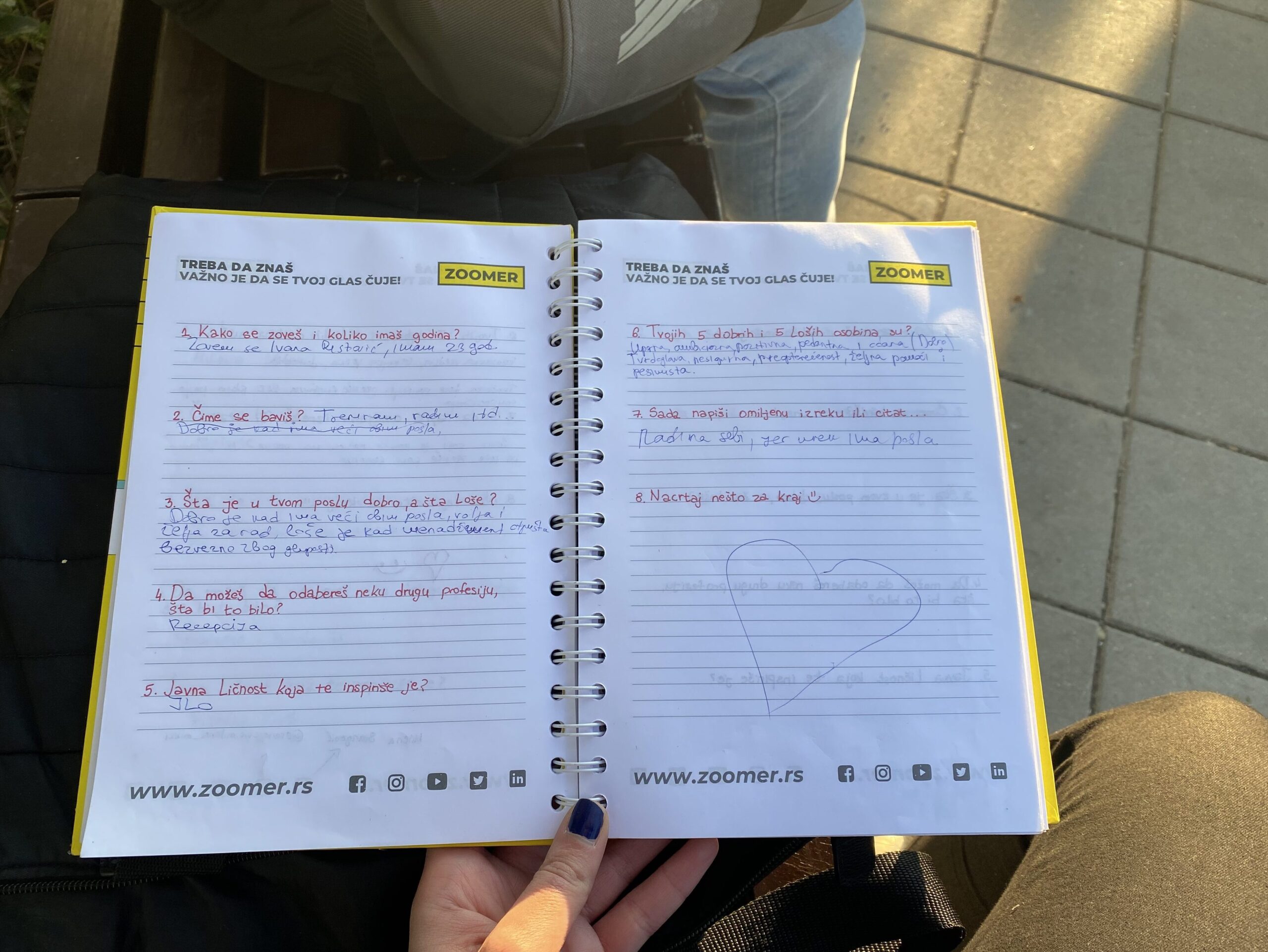 Najpre smo sele malo ispred tržnog centra, gde je Ivana ispisala stranicu sa pitanjima, „opalile” smo selfi i nastavile dalje.