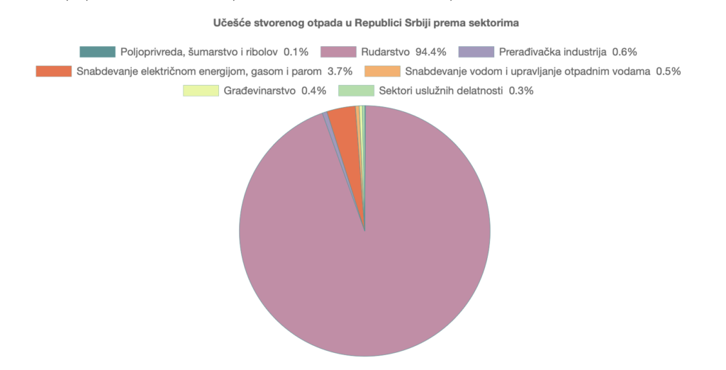 Skoro 95% otpada u 2022. godini u Srbiji, prema navodima Republičkog zavoda za statistiku, dolazi iz sektora rudarstva. Ostalih 5% zauzimaju poljoprivreda, prerađivačka industrija, snabdevanje električnom energijom, snabdevanje vodom, građevinarstvo i sektori uslužnih delatnosti.
