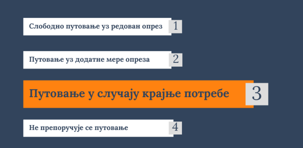 U njima stoji da se putovanja preporučuju samo u slučaju nužde, a kao razlog se navodi neosnovano i neprimereno postupanje tela Republike Srbije prema hrvatskim državljanima.