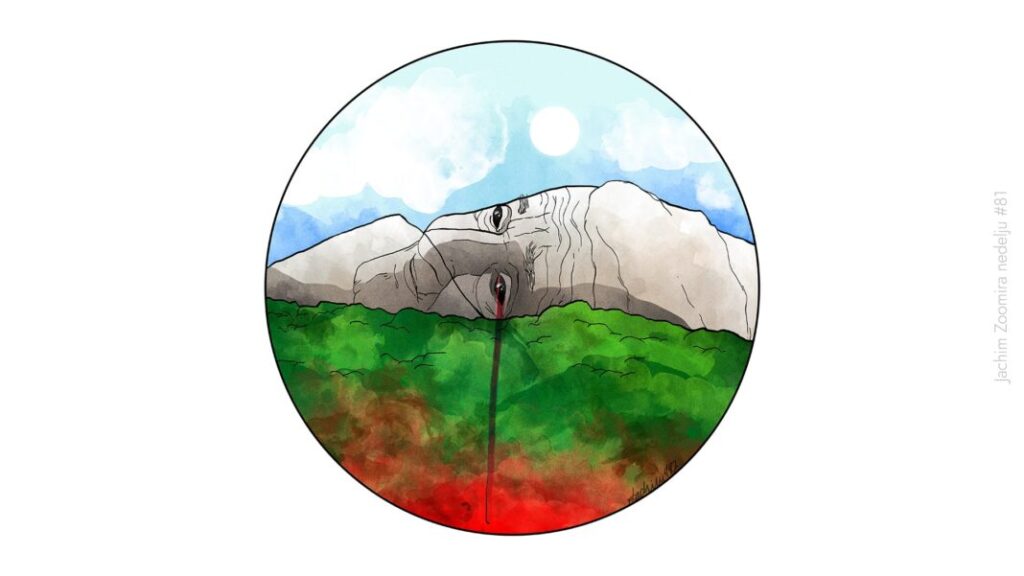 U Srbiji je prava ekološka revolucija jer je ugrožavanje životne sredine sveprisutno – od najnovijeg izlivanja amonijaka, preko katastrofalnog zagađenja vazduha u Beogradu i većim gradovima, do sveopšteg zagađenja u gradovima poput Majdanpeka. I pored zastrašivanja, praćenja dronovima i hapšenja – aktivisti ne odustaju od bobre. Ni za planinu Staricu koja je na ilustraciji, ni za Šordoš, ni za dolinu Jadra, ni za ostatak Srbije.
