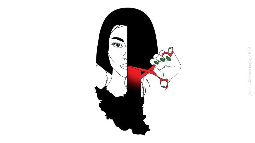 Nakon što je devojka preminula posle hapšenja zbog „loše nameštenog hidžaba” u Iranu prava revolucija – zahteva se ne samo ukidanje moralne policije (što je najavljeno, ali je diskutabilno da li će se desiti) već pad režima koji sprovodi šerijatske zakone. Odgovor države je brutalan – ljudi koji protestuju su prebijani, hapšeni, a neki su i osuđeni na smrt. Iako je ovo široko pokrivena tema na Zoomeru, Jaćko sjajno ilustruje celu priču bez ijedne reči.
